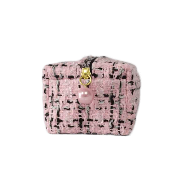 sac cosmétique en tweed pour femme à texture élégante