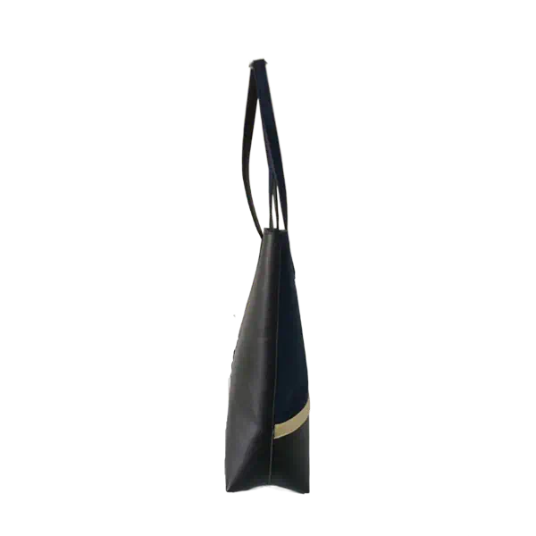 Women's tote gold stripe contrasts with a stylish city handbag