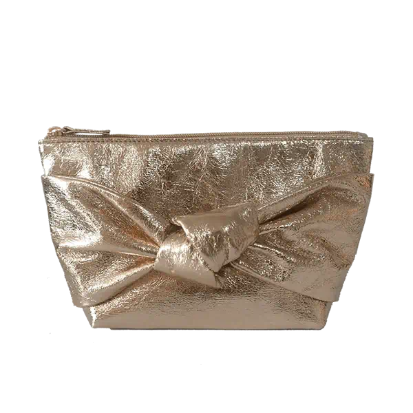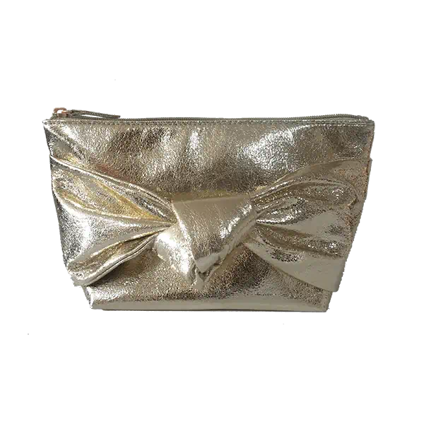 淺金色爆裂紋質感蝴蝶結化妝包